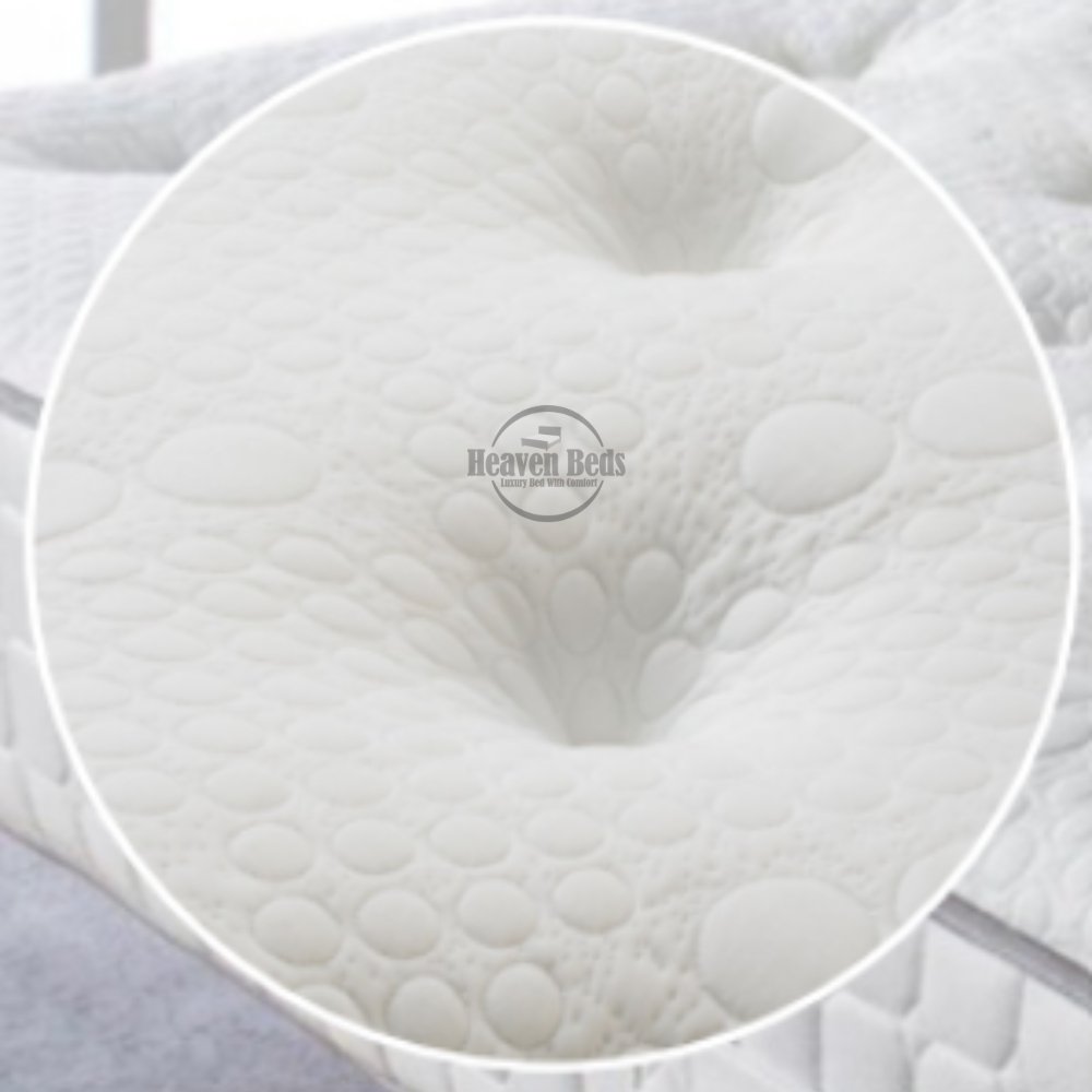 Pocket springs compress individually. Memory foam dampens vibrations. Better motion isolation than traditional spring beds. - Breathable quilted cover