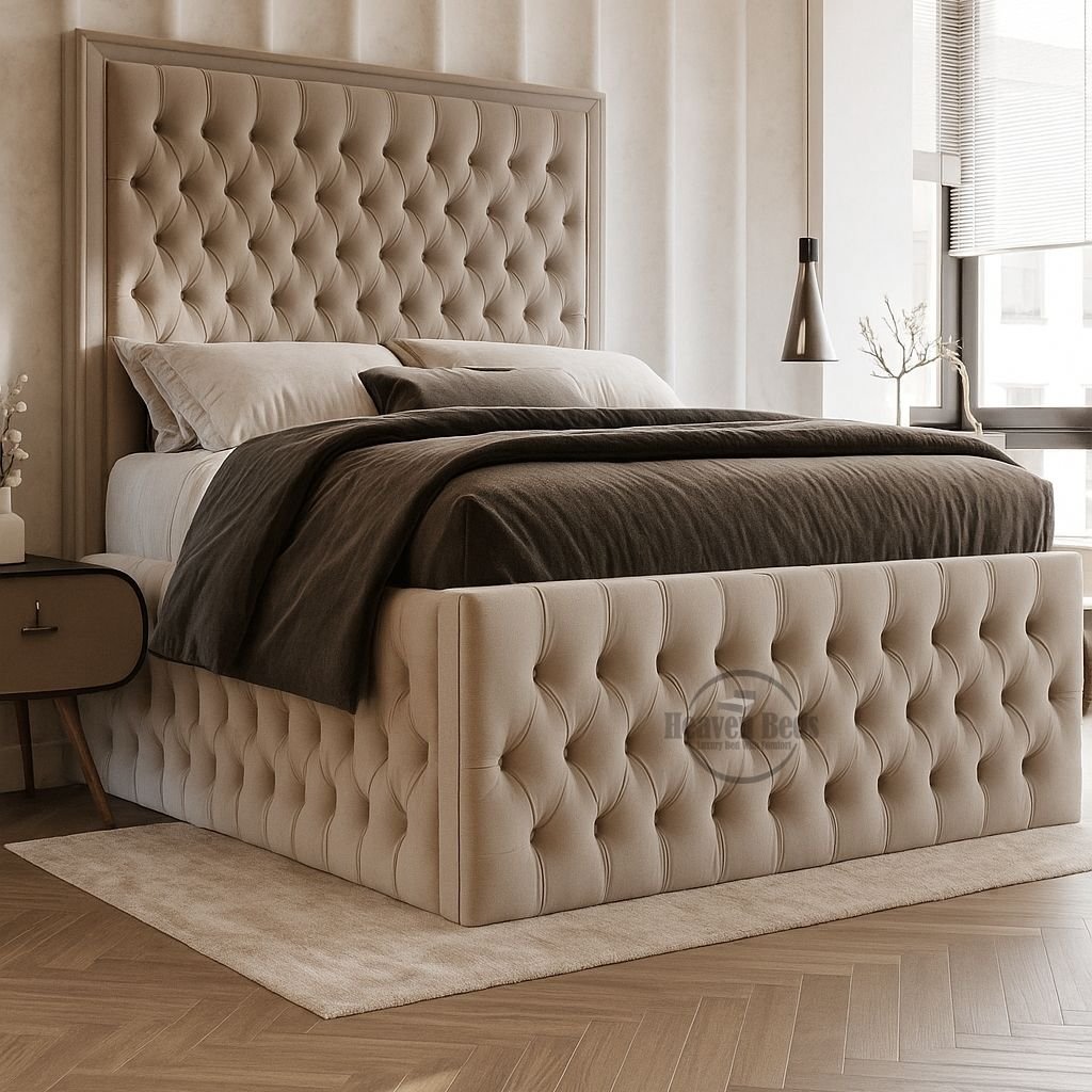 The Dover Upholstered Bed brings classic luxury into modern UK bedrooms with its elegant button-tufted detailing and fully upholstered silhouette. Designed as a tufted upholstered bed frame, it combines visual softness with strong structure, creating a refined centrepiece that feels both timeless and comfortable.
