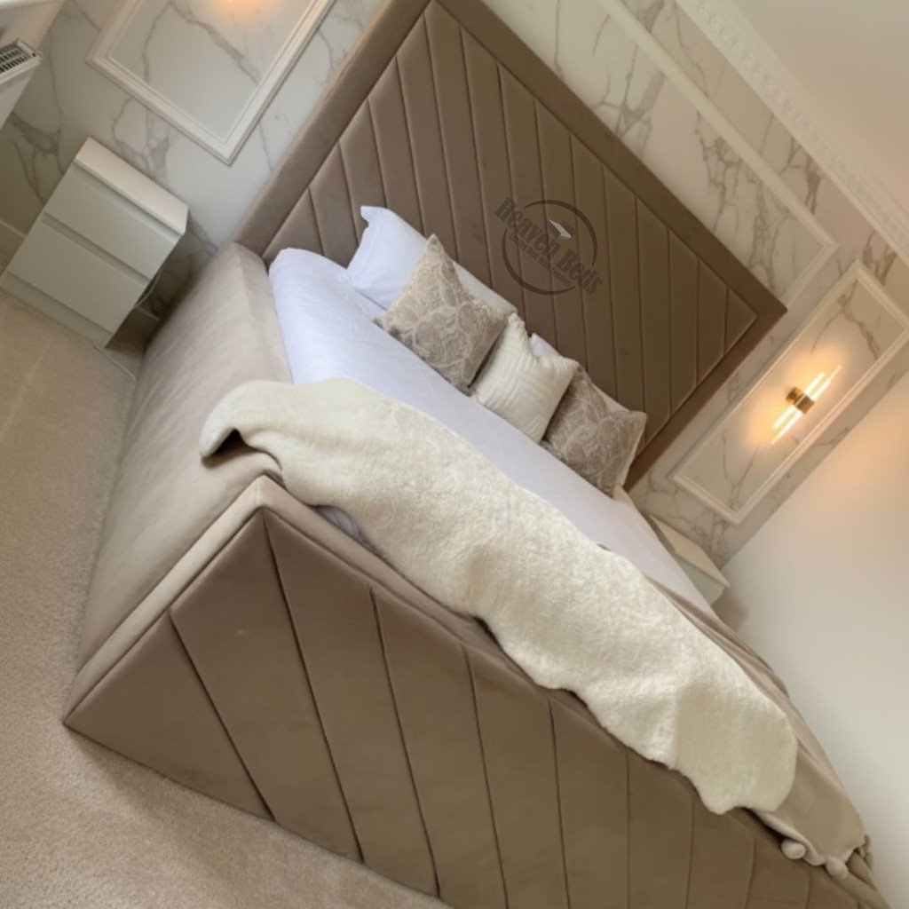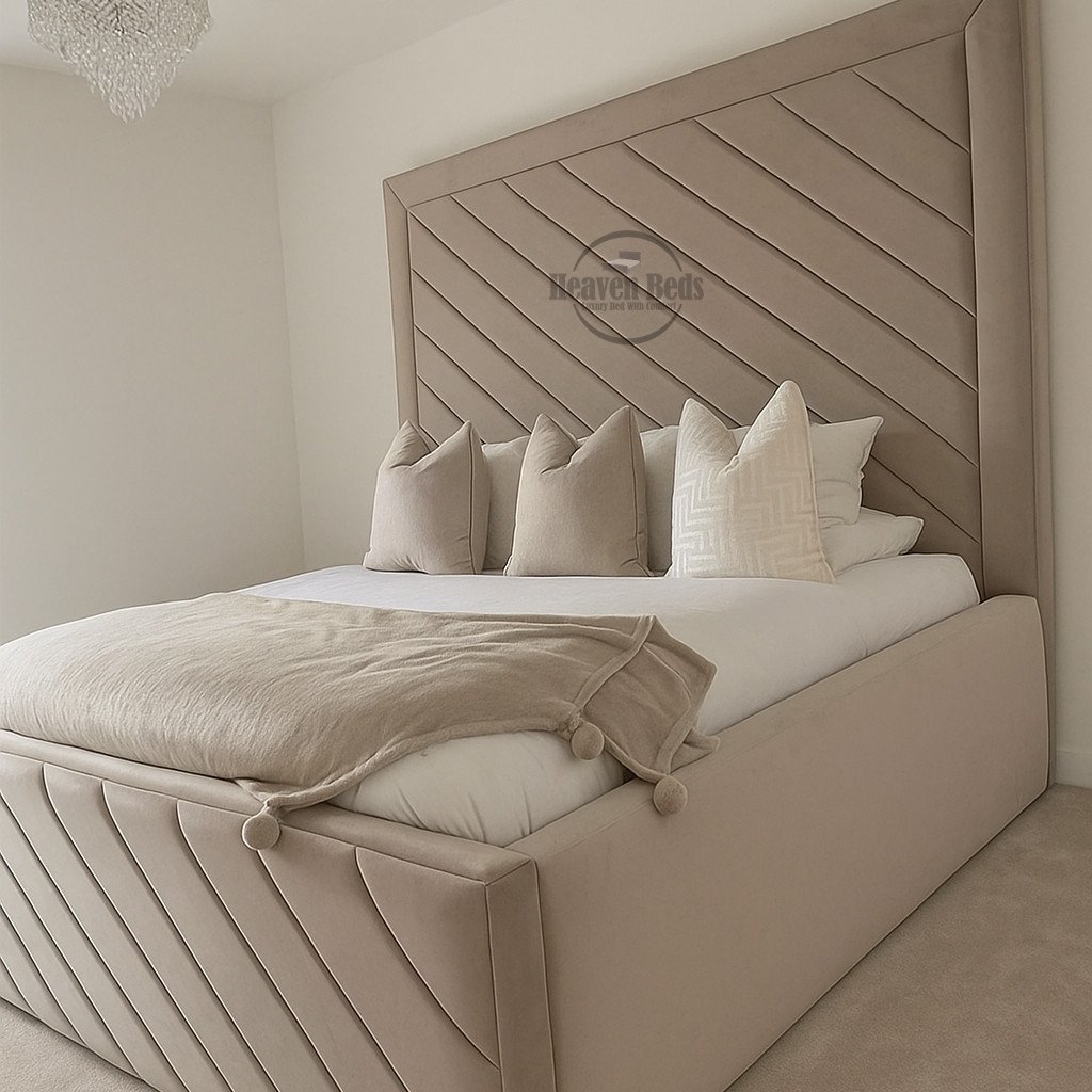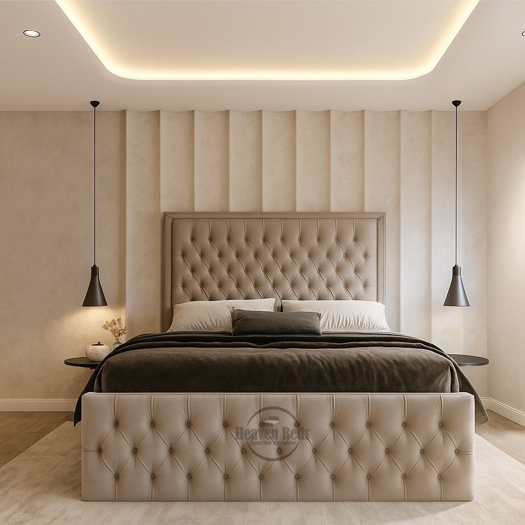 The Emmeline Cosy Bed blends soft comfort with contemporary detailing, featuring a distinctive upholstered panel bed design that instantly elevates modern bedrooms. The diagonal panel layout adds subtle movement and texture, creating a refined focal point without overpowering the space.