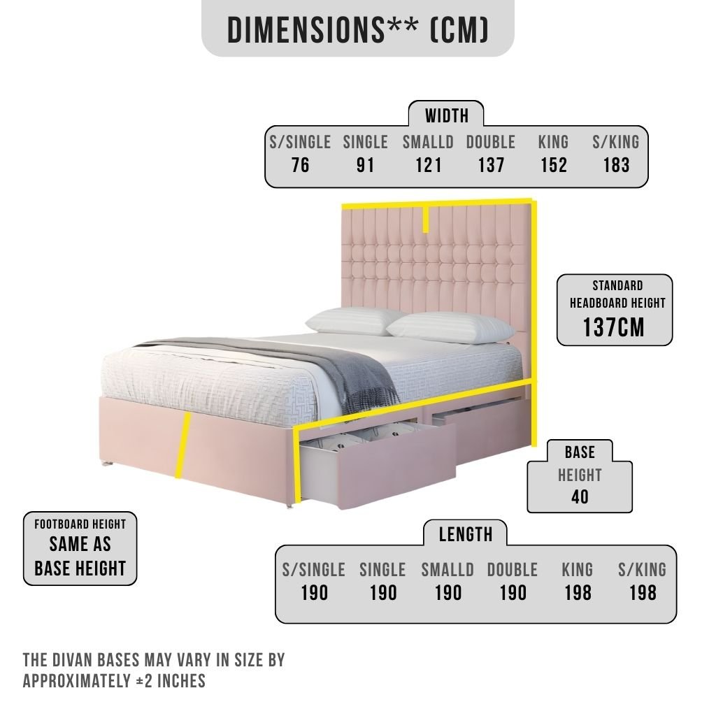 As a divan bed with drawers, the Galaxy makes everyday organisation easy. Multiple drawer configurations allow you to store bedding, clothes, or essentials neatly out of sight. With its padded, vertically detailed headboard and sleek base, this contemporary divan bed UK customers love blends comfort, function, and modern design effortlessly.