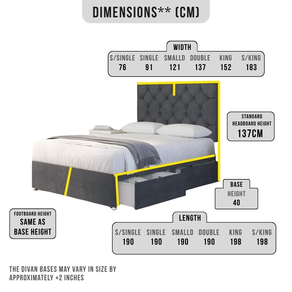 - Divan bed with drawers (2, 4, or foot-end drawer options)
