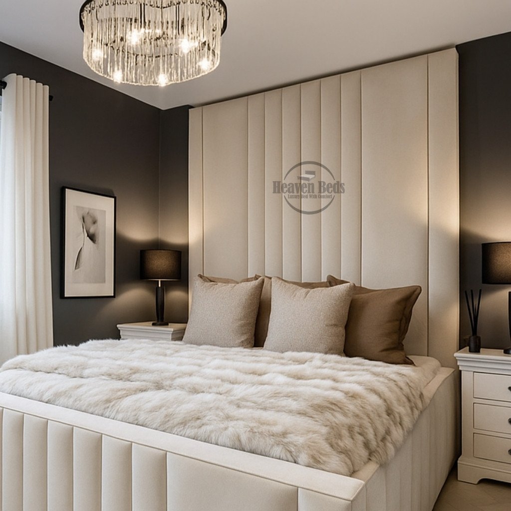 The vertical fluting adds texture and height without clutter, giving bed clean, modern, architectural appearance.