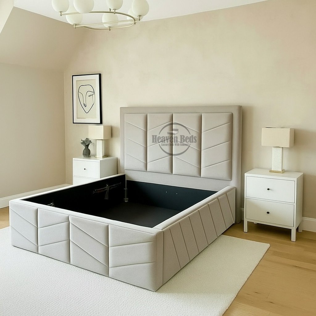 ✓ Optional gas-lift ottoman storage – Discreet under-bed space for bulky bedding and seasonal storage