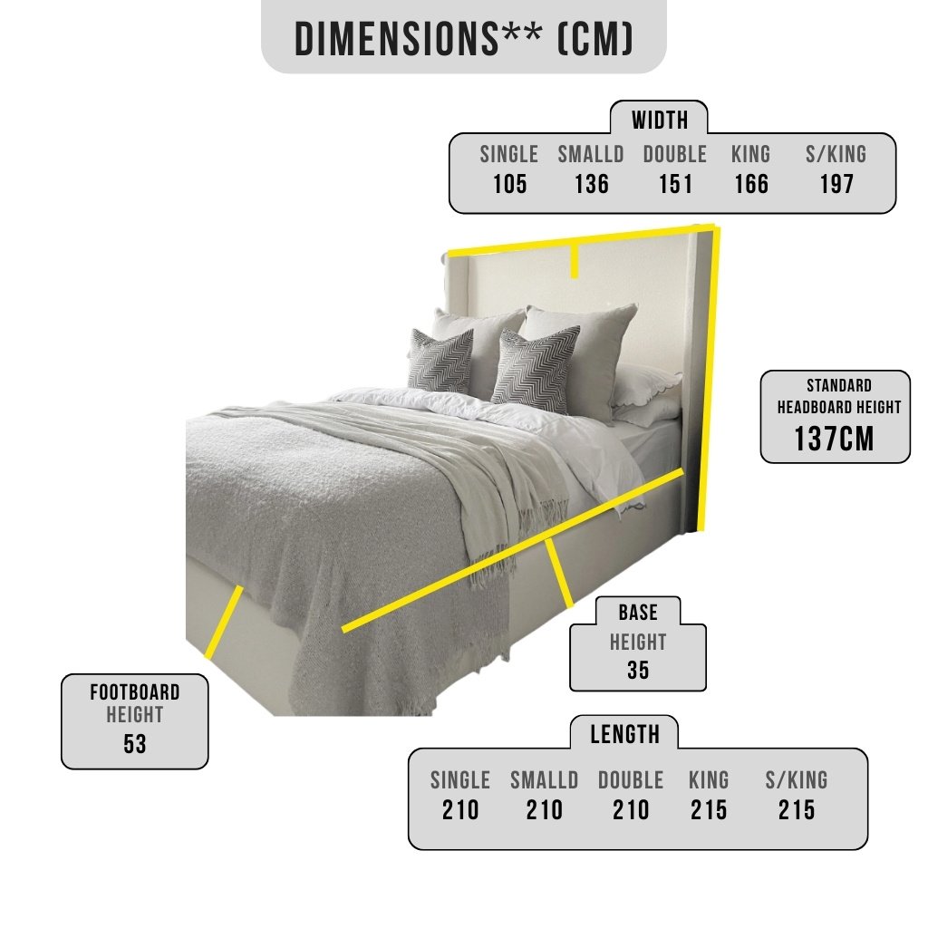 The Savoy Luxe bouclé bed is available in standard UK sizes, making it suitable for a wide range of bedroom layouts:
