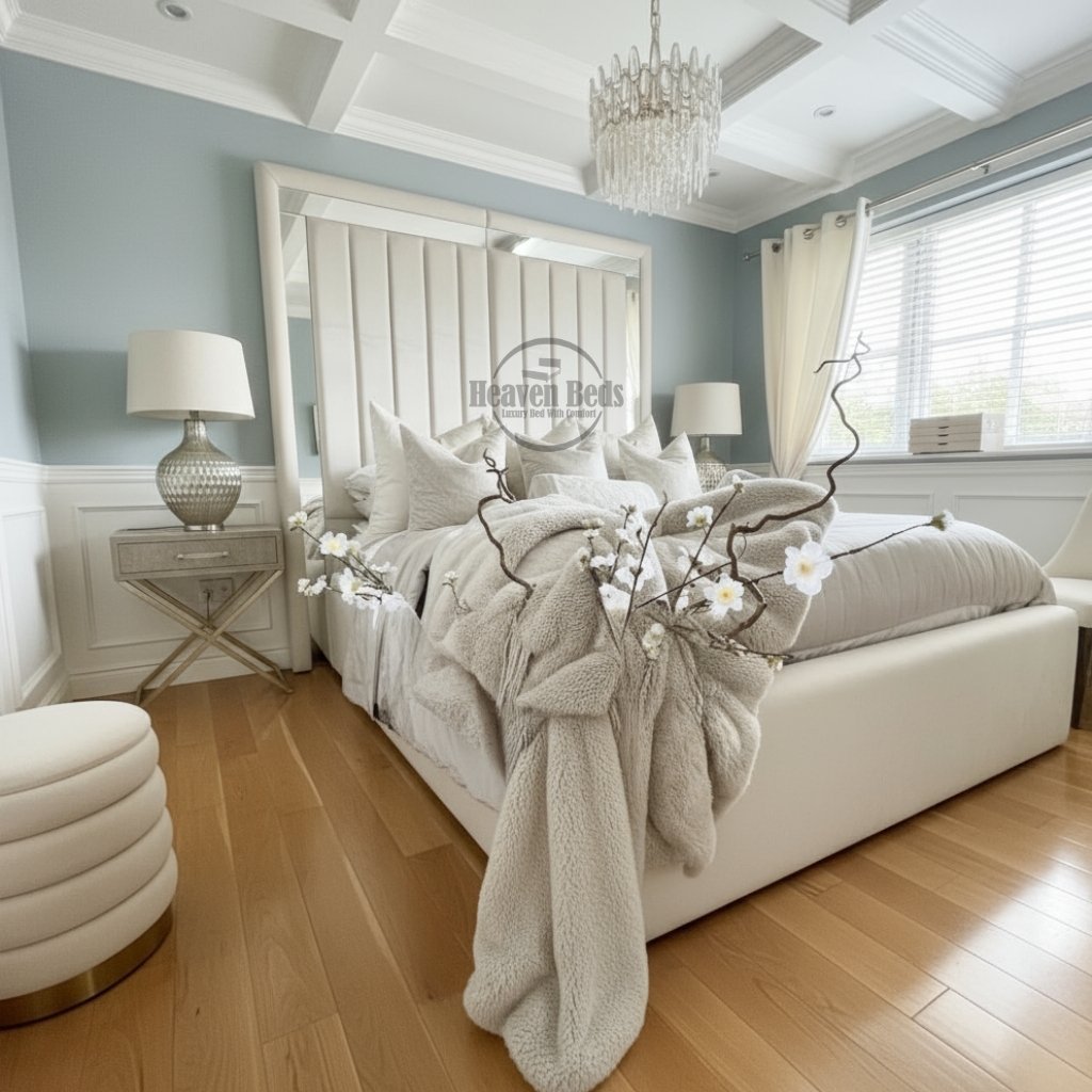 The Soho Luxury Mirror Bed brightens and elevates bedrooms instantly with subtle mirrored detailing that reflects light beautifully. This Mirror Bed frame combines soft upholstery with elegant mirror panels to create glamorous, spacious feel.